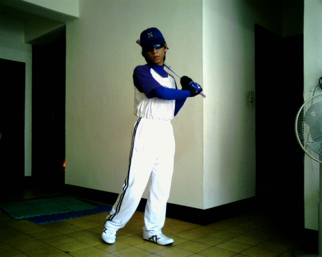 2009.2.15進入寶藍色系棒球服登場時期,2009.2.14寶藍高領長袖萊卡緊身衣初登場,搭配紅色帽子、紅色短袖、白色褲子(2009年款)、白色運動鞋,2009.2.15把藍色運動鞋改穿白色塑膠釘鞋,帽子深藍色改戴寶藍色,最新棒球寫真在棒球服裝寫真集登場.