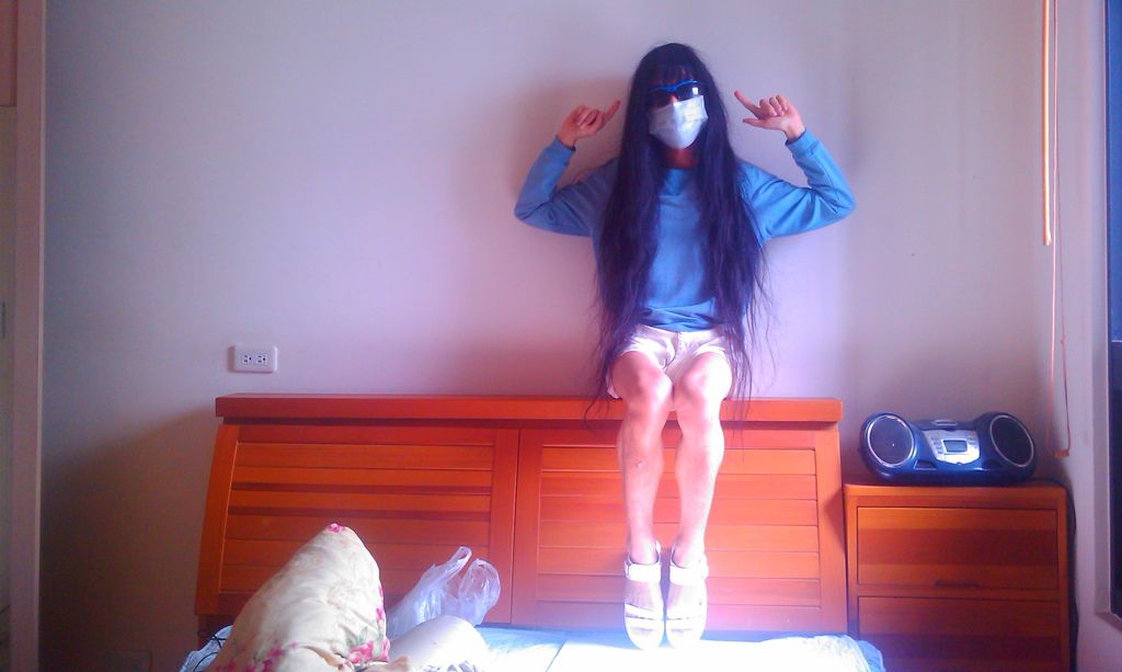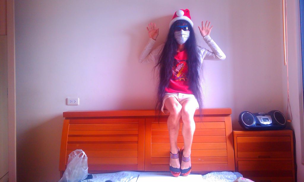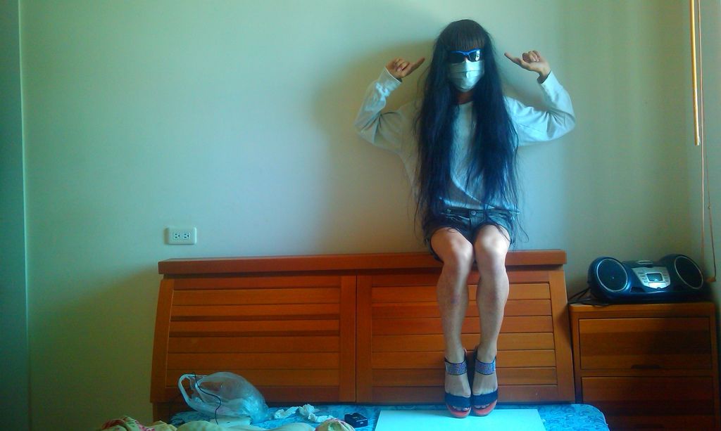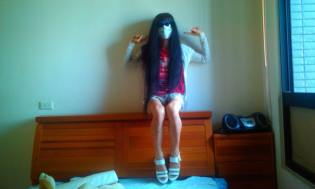 戴口罩跳舞的舞者網路藝人魚兒的女子版本(Girl Ver.)小魚的創造者兼扮演者身高157公分的偽娘賴家宏在2011年開始買女裝,下面的照片是白色長袖、牛仔短褲、橘色底部黑色涼鞋的照片,2011年戴口罩跳舞的舞者網路藝人魚兒的女子版本(Girl Ver.)小魚的創造者兼扮演者身高157公分的偽娘賴家宏買牛仔短褲,牛仔短褲可以搭配白色外套、短袖上衣或白色長袖上衣,鞋子可以搭配涼鞋,照片的齊瀏海髮片是2013年戴口罩跳舞的舞者網路藝人魚兒的女子版本(Girl Ver.)小魚的創造者兼扮演者身高157公分的偽娘賴家宏購買的黃棕色髮片,涼鞋是2015年購買的橘色底部黑色涼鞋。